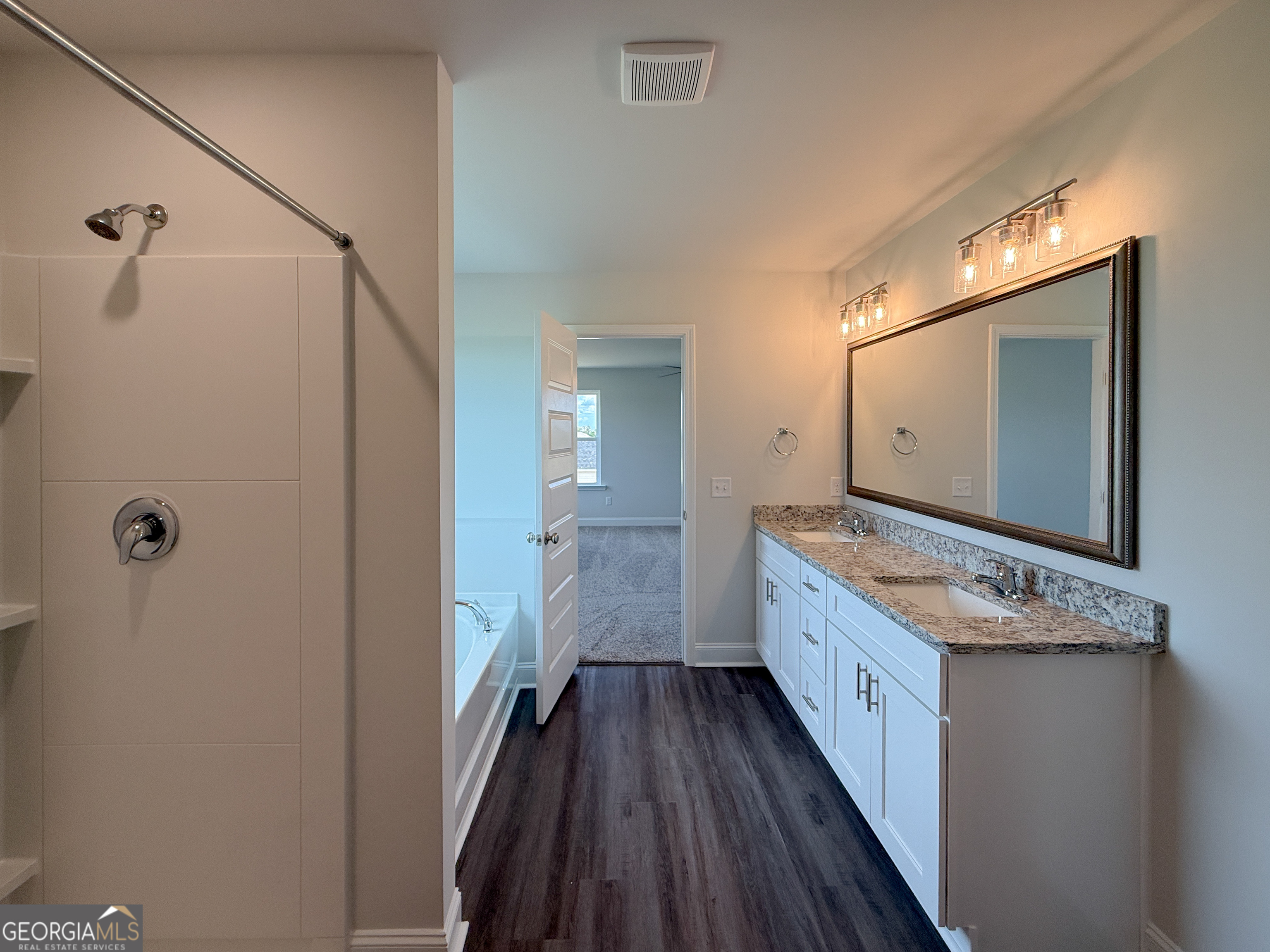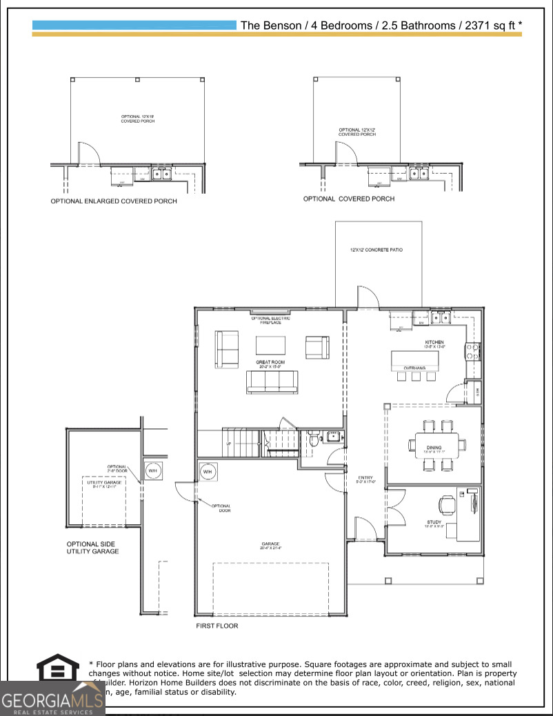 Welcome to the Benson Plan, a stunning 4-bedroom, 2.5-bathroom home spanning 2,371 sqft in the highly anticipated Mayberry subdivision of Statesboro. Perfectly situated for convenience and community, Mayberry features inviting sidewalks and streetlights, creating a charming, walkable environment. Step inside to discover a meticulously designed interior, starting with a welcoming study just off the entry. The heart of the home boasts a modern kitchen with an expansive island, sleek granite countertops, stainless steel appliances, and elegant 36" white shaker cabinets with staggered 30" uppers. Upstairs, retreat to the spacious primary bedroom featuring an ensuite bathroom with double vanities, a linen closet, and a walk-in closet with custom shelving. Three additional bedrooms offer ample space for family or guests, complemented by a full bath and a conveniently located upstairs laundry room. Enjoy luxury vinyl plank flooring throughout common areas and bathrooms, complemented by stain-resistant carpeting in bedrooms. Framed mirrors add a touch of sophistication to each bathroom. Outside, the professionally landscaped yard includes sod, pine straw, and an irrigation system, ensuring your outdoor space remains lush and vibrant year-round. Additional highlights include a garage, a 12x19 covered patio with upgrade options, and smooth painted walls and ceilings throughout. Scheduled for completion by August 2025, this home comes with $8,000 in builder incentives for a limited time, making it the perfect opportunity to customize your dream home. Explore our Preferred Lender Program offering up to a 1% lender credit, designed to streamline financing tailored to your needs.